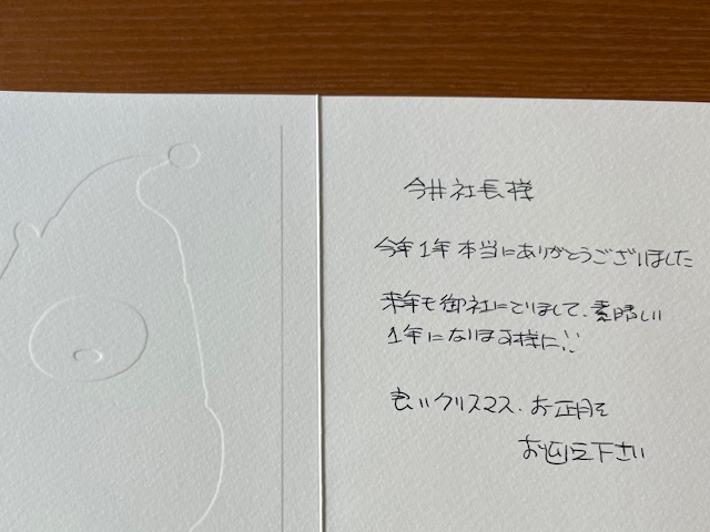 隔月でお米を差し上げている会社近くの子ども食堂から、お礼状を兼ねたクリスマスカードが届きました。